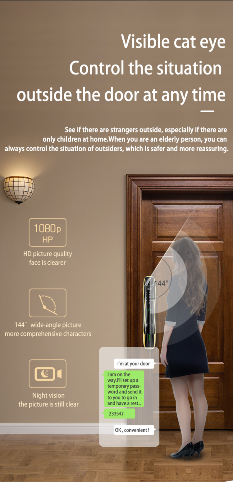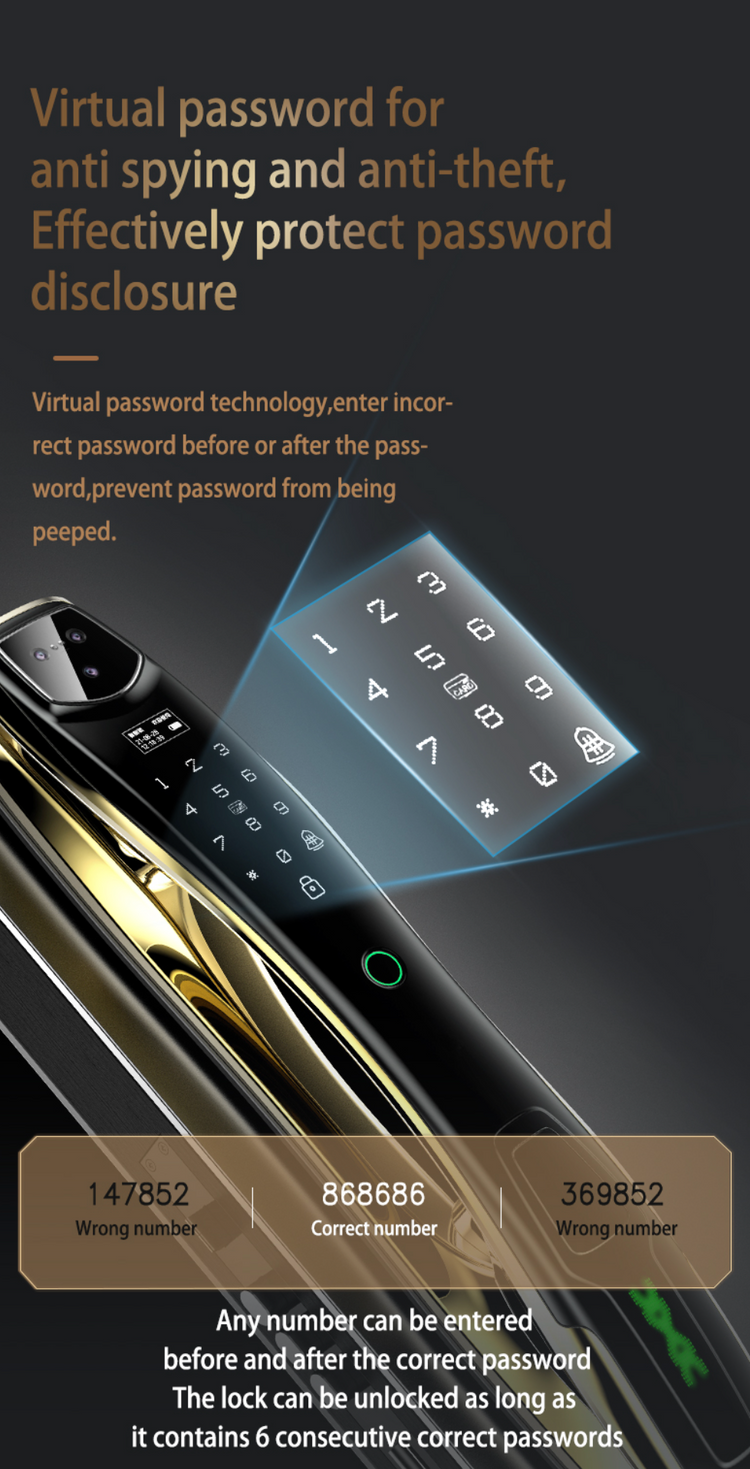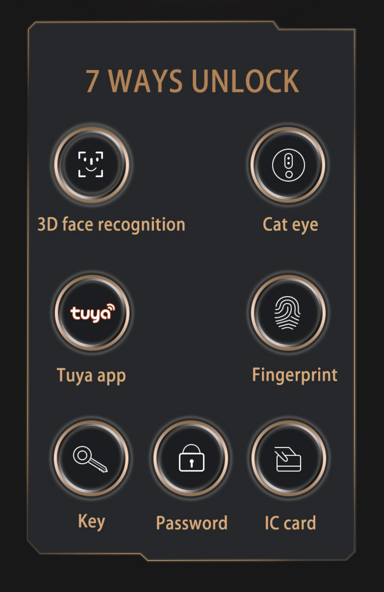 - Unlock mode: Face+Password+Fingerprint + Key+Card